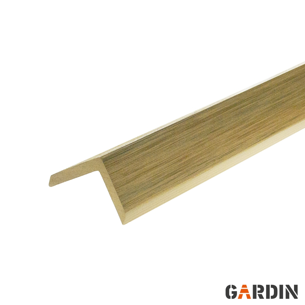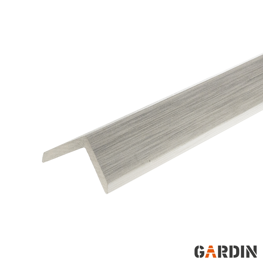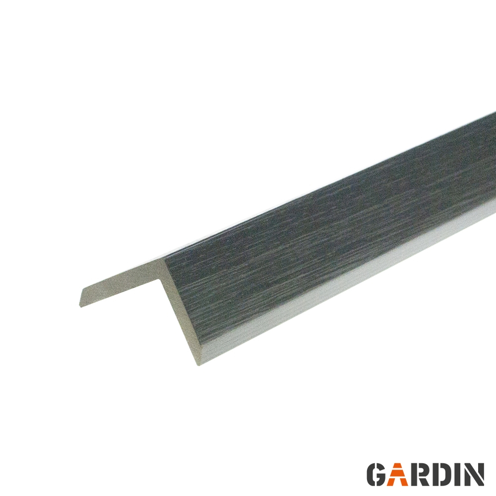 Кутова планка, призначена для терасної дошки Gardin Natur Виготовлена з суміші полімерів високої щільності та деревних волокон. Щільна і міцна, має високу зносостійкість. Містить УФ-фільтр та захисні добавки, стійка до біологічного руйнування. Випускається в кольорах, що відповідають кольорам дощок.